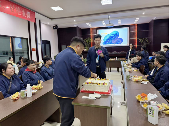 生日會現場,黃總攜各位領導親臨現場,為壽星們送上最真摯的祝福。“感謝大家在崗位上的辛勤付出,公司的發展離不開每一位家人的努力。希望今天的生日會能讓大家感受到家的溫暖,愿大家在未來的日子里健康快樂,與公司共同成長。”黃總的話語樸實而溫暖,如同冬日里的一股暖流,滋潤著每個人的心田。領導們與壽星們親切交談,傾聽大家的心聲,讓這份關懷變得更加真切動人。